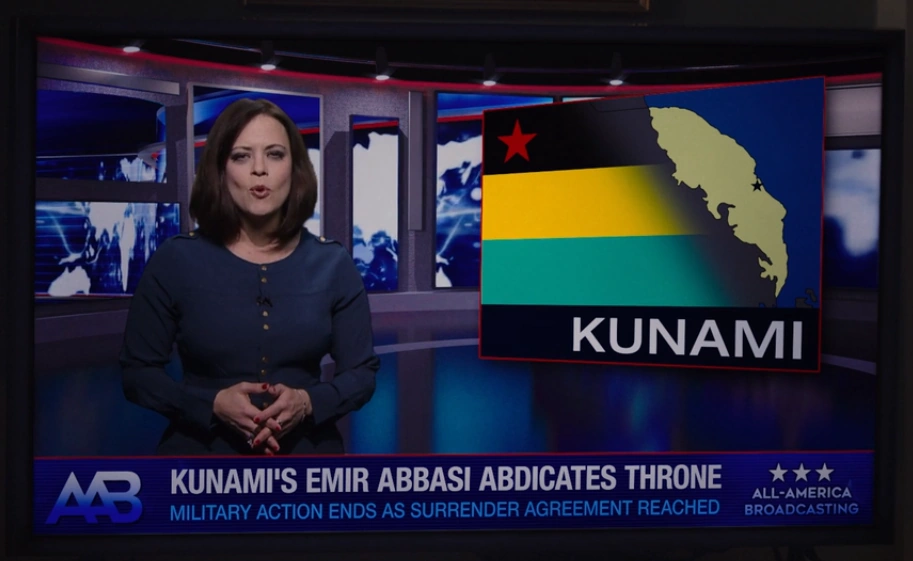 Kunami news graphic seen on All-America Broadcasting.